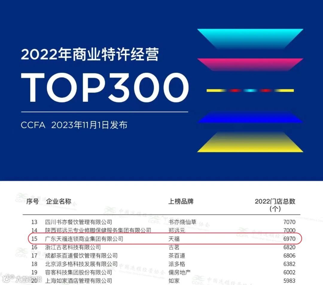近日,为推动特许经营高质量发展,发挥领先企业的引领和带动作用,中国连锁经营协会发布《2022年商业特许经营Top300》榜单。天福集团首次入围榜单,位列第15名,并在登榜的便利店业态企业中排名第2。