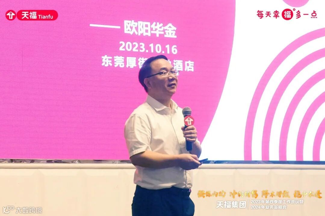 10月16日-10月17日,以“强练内功,冲刺销售,降本增效,稳中求进”为主题的天福集团2023年第四季度工作会议暨2024年业务策略会在东莞富盈酒店隆重举行。天福集团董事长兼总裁欧阳华金先生出席会议,总部及各分子公司中高层管理人员100余人参加会议。