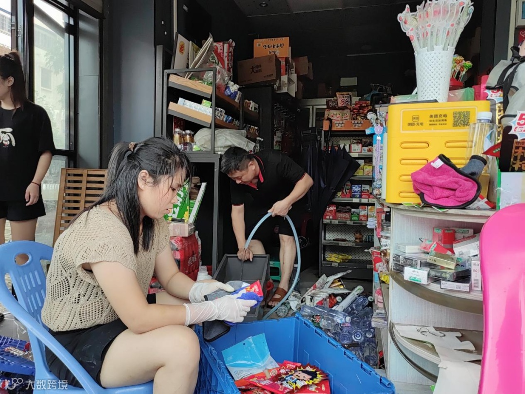 为此,茂名分公司立即启动应急预案,紧急调配救援小组,迅速到达受灾门店展开救援工作。现场,天福救援人员帮助门店清洗整理积水商品、整理陈列、盘点损失,并用最快的速度帮助门店恢复正常运营。
