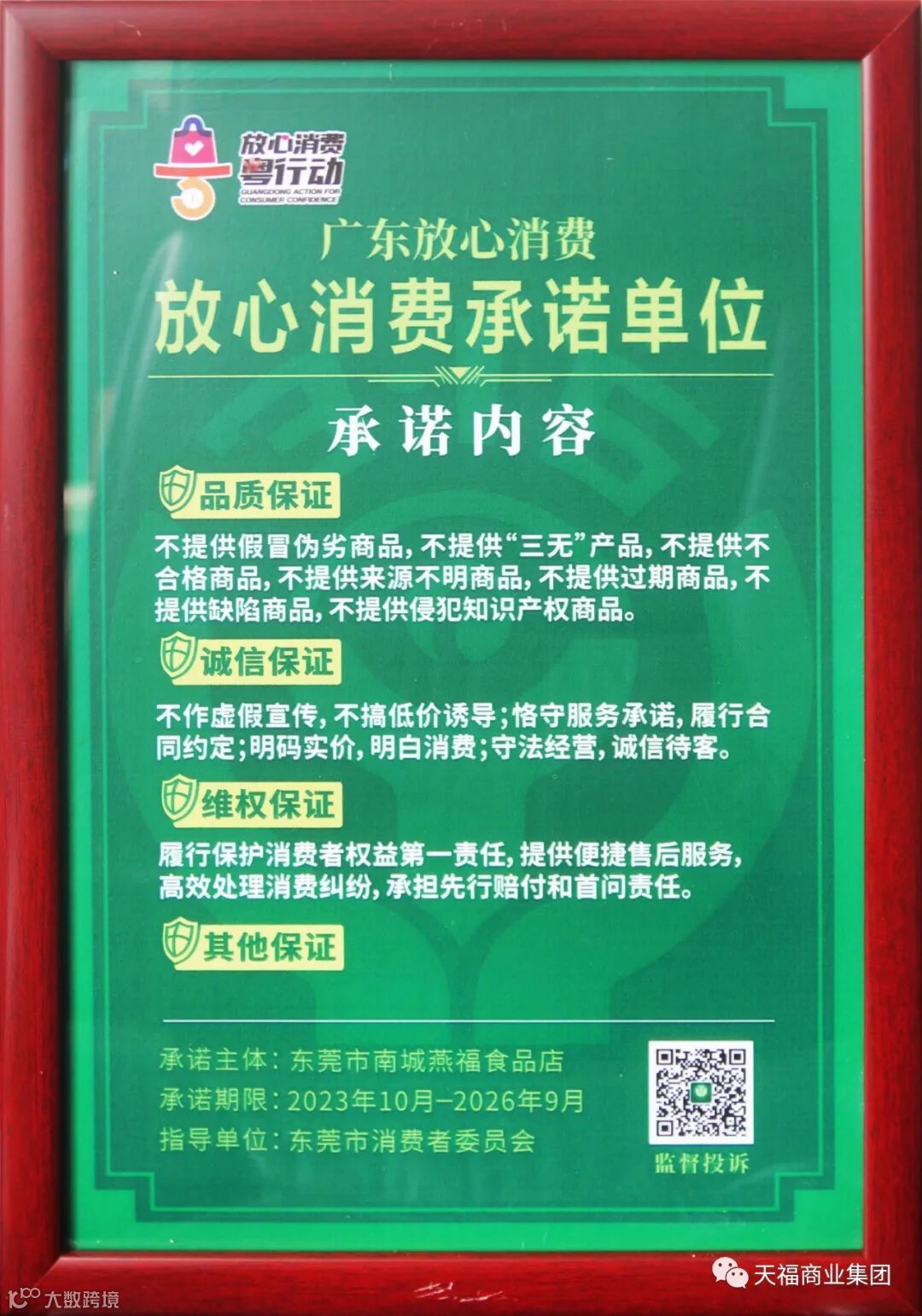 天福集团旗下3家门店签订“广东放心消费承诺单位”承诺书