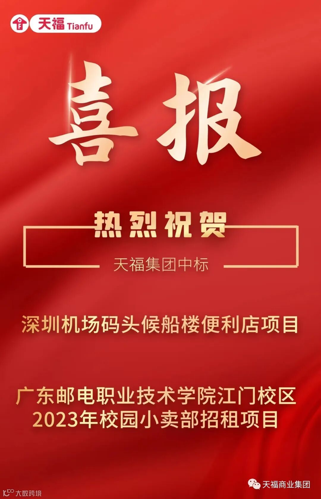 近日,天福集团中标喜讯频传,公司接连中标深圳机场码头候船楼便利店项目和广东邮电职业技术学院江门校区2023年校园小卖部招租项目,为集团高质量发展再添强劲动力。