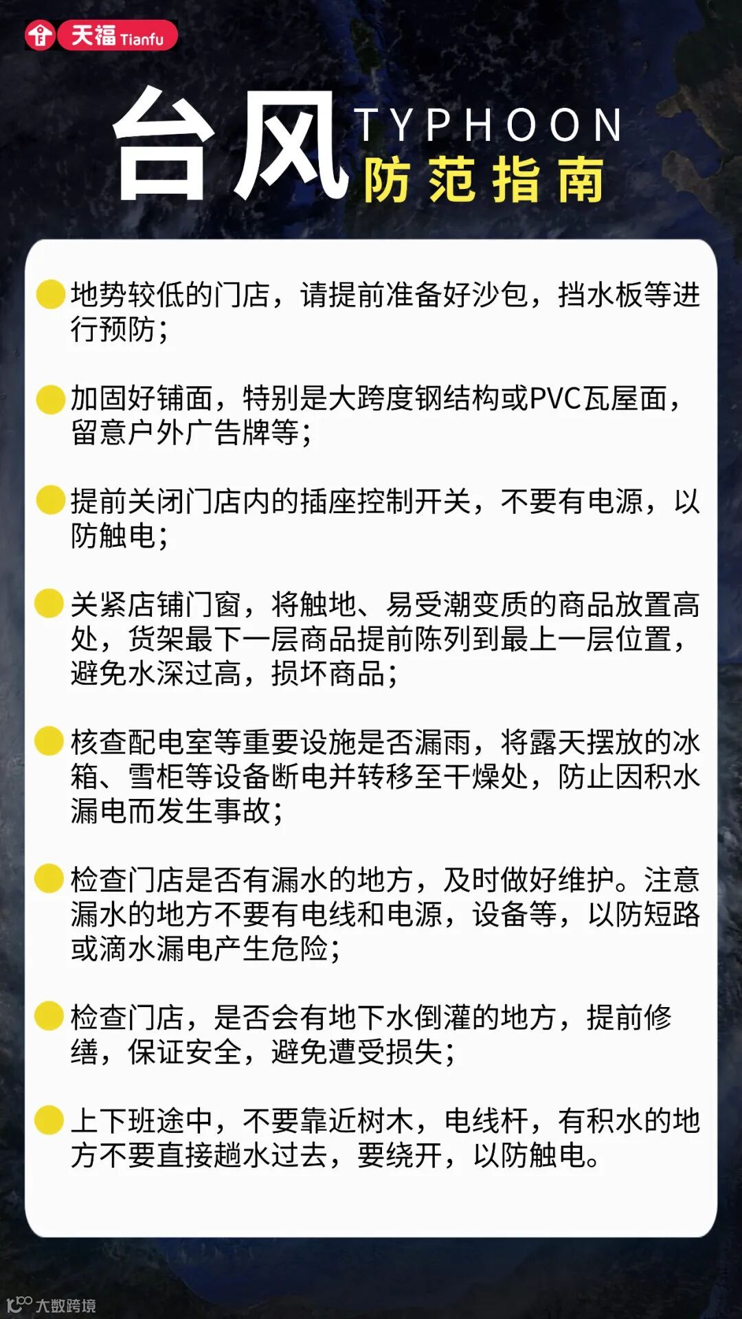 以下是小福为各位店主们整理的一份台风防范指南