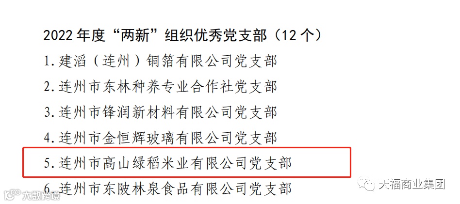 会上,连州市高山绿稻米业有限公司党支部经过审定,获评连州市2022年度“两新”组织优秀党支部称号。