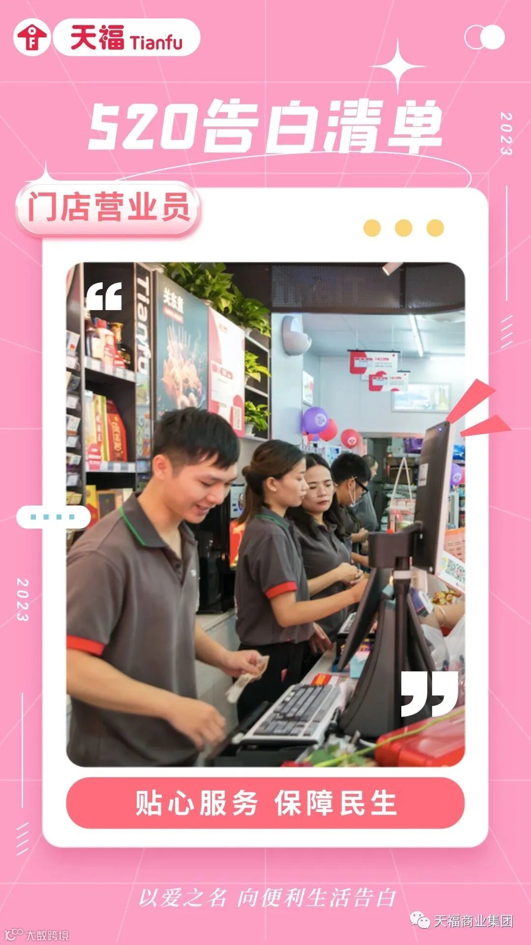 快一同走进我们的520告白清单,看看不同岗位的天福人是怎么以爱之名,向便利生活告白!