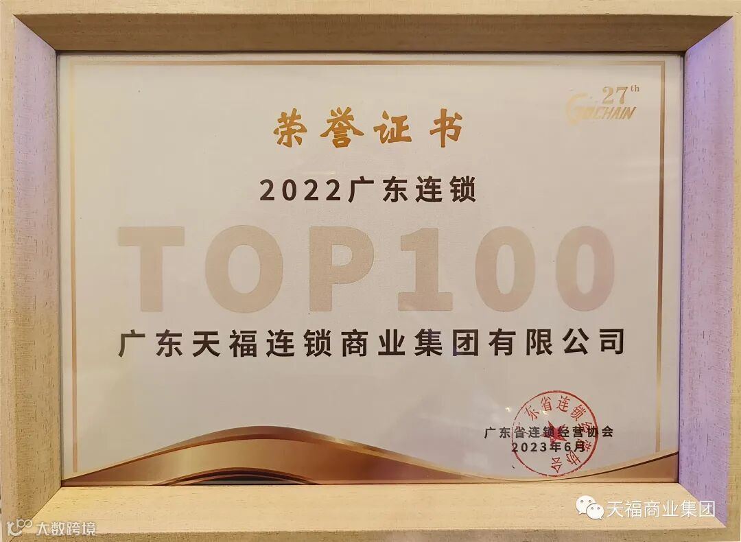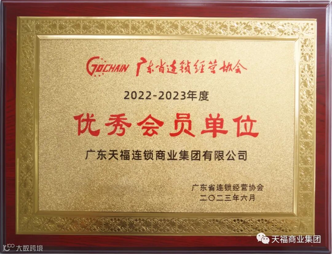 会上,天福集团凭借突出的综合实力、强劲的品牌号召力连续13年荣登广东连锁百强,位列第15名,并荣获“2022-2023年度优秀会员单位”荣誉。