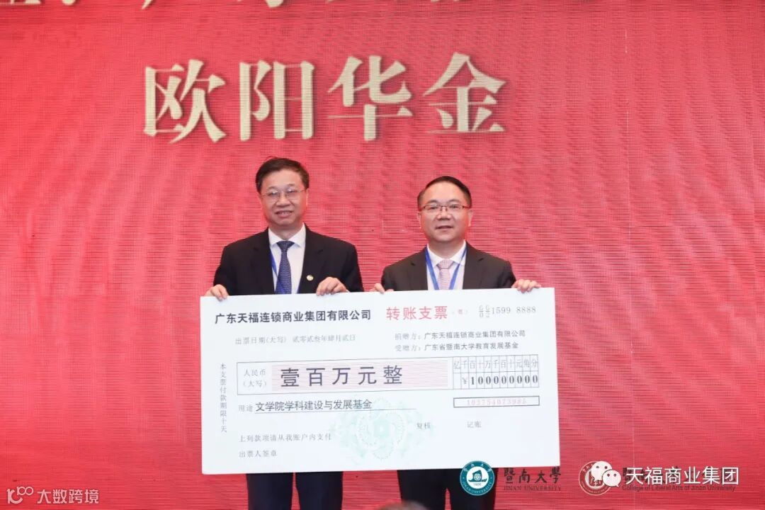 2021年,欧阳总曾向暨南大学教育发展基金会捐赠20万元用于詹伯慧语言学奖,以实际行动支持语言学奖的健康发展。2022年时还曾为暨大师生捐赠爱心物资,呵护学子归家路。