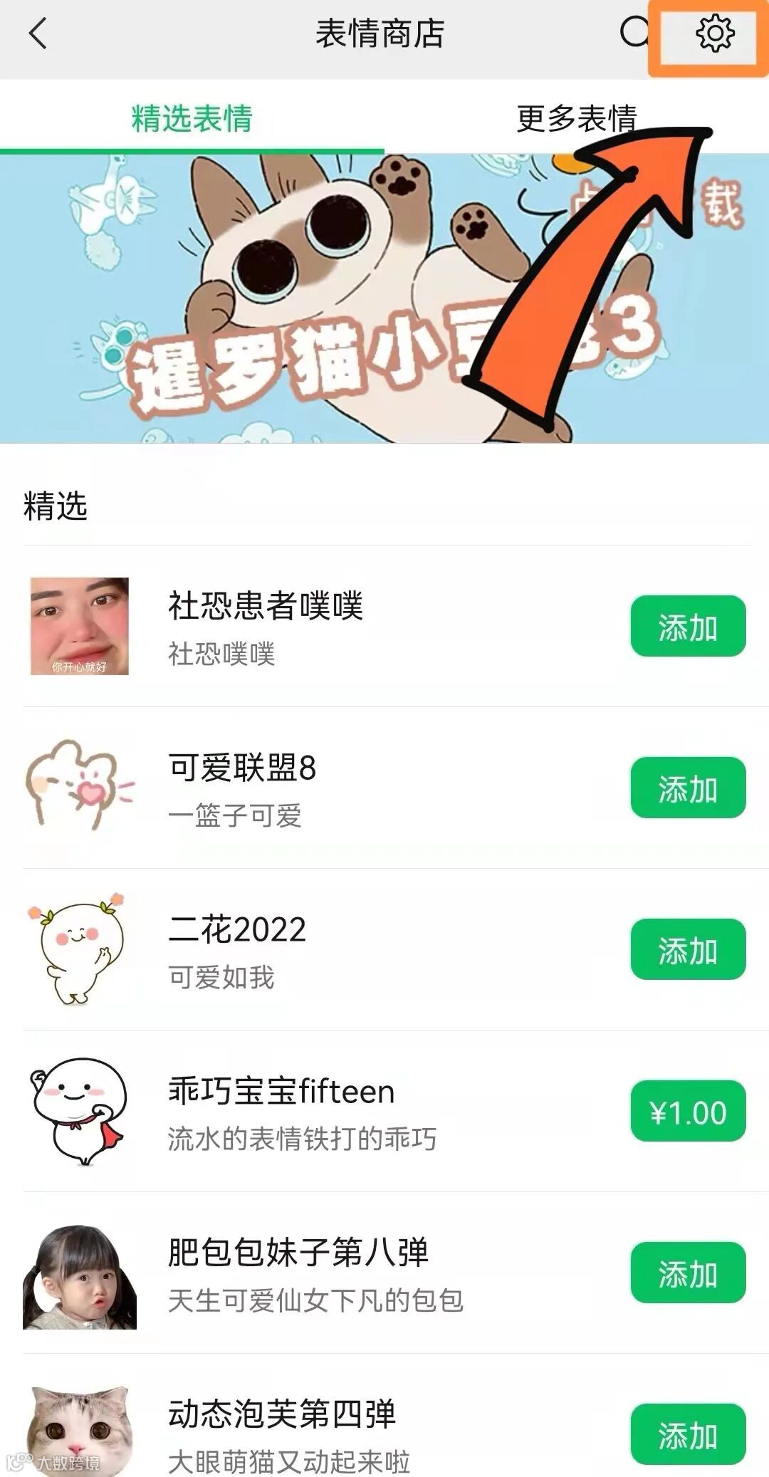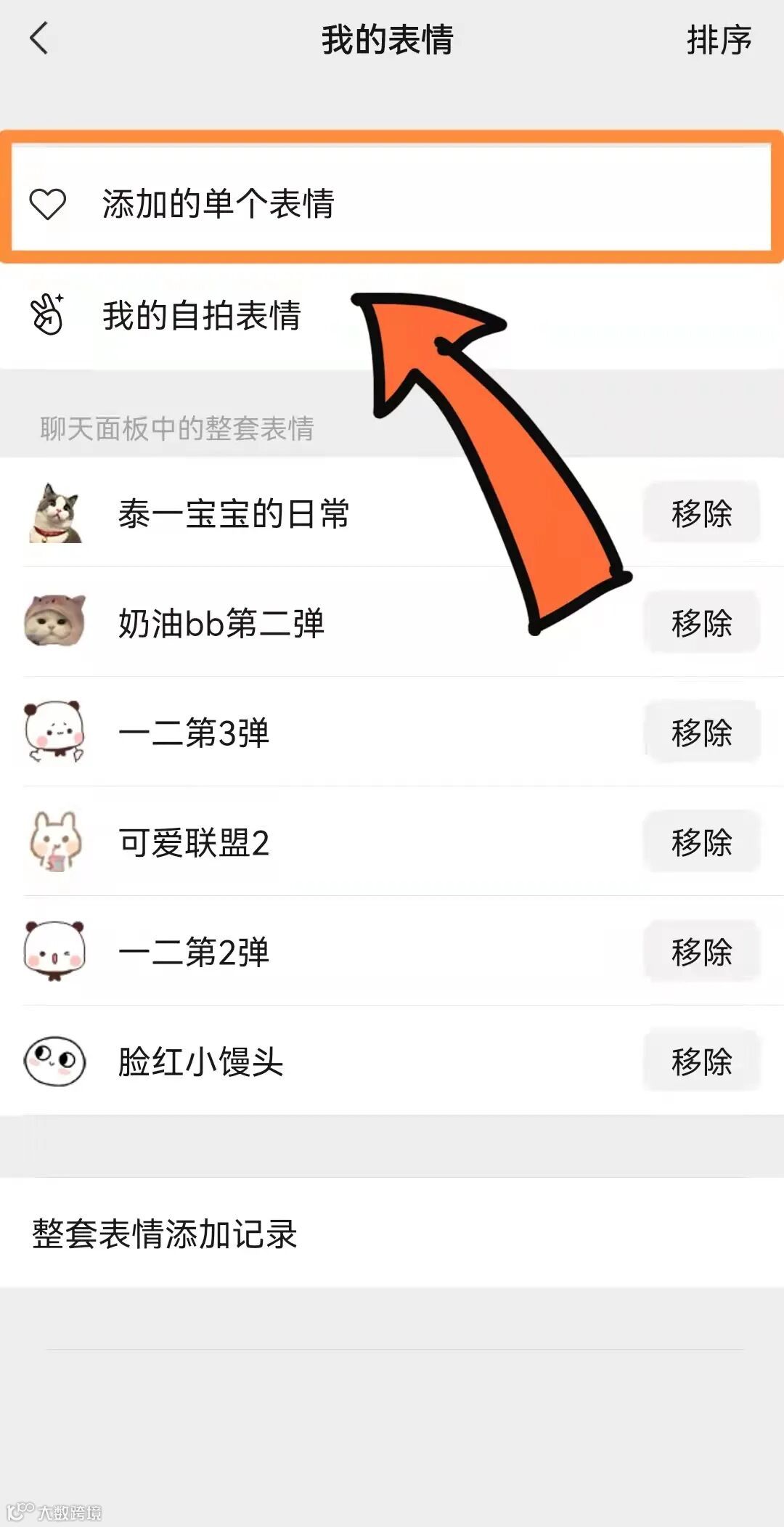 再依次点开“表情—设置—添加的单个表情”