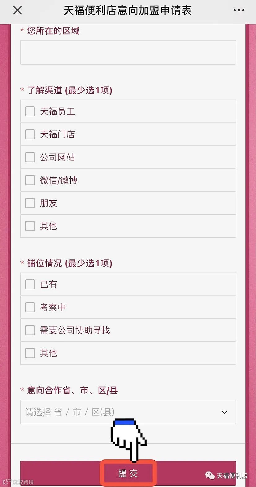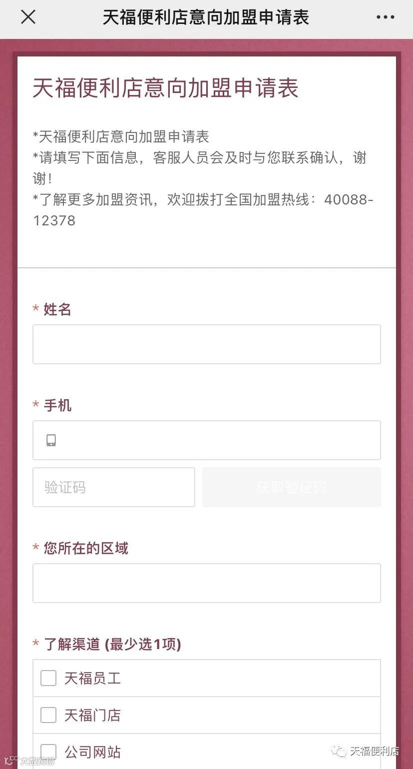 点击公众号菜单中【加盟申请】