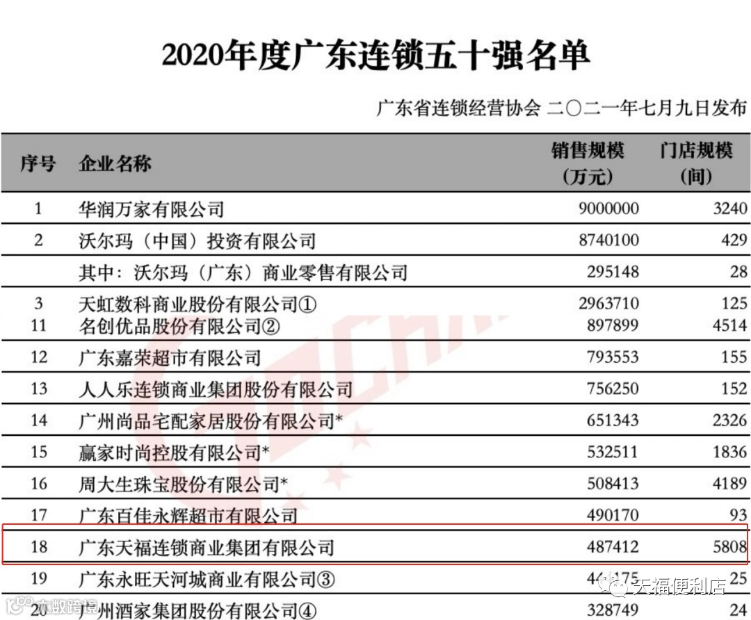 7月9日,广东省连锁经营协会重磅发布《2020年度广东连锁五十强》榜单,作为广东本土便利店连锁品牌,天福凭借深耕广东便利店行业十七年所积攒的丰富经验、扎实根基与品牌优势,再度强势登榜,名列第十八位。据悉,作为广东连锁商业品牌中的佼佼者,天福已连续十二年上榜广东连锁五十强。
