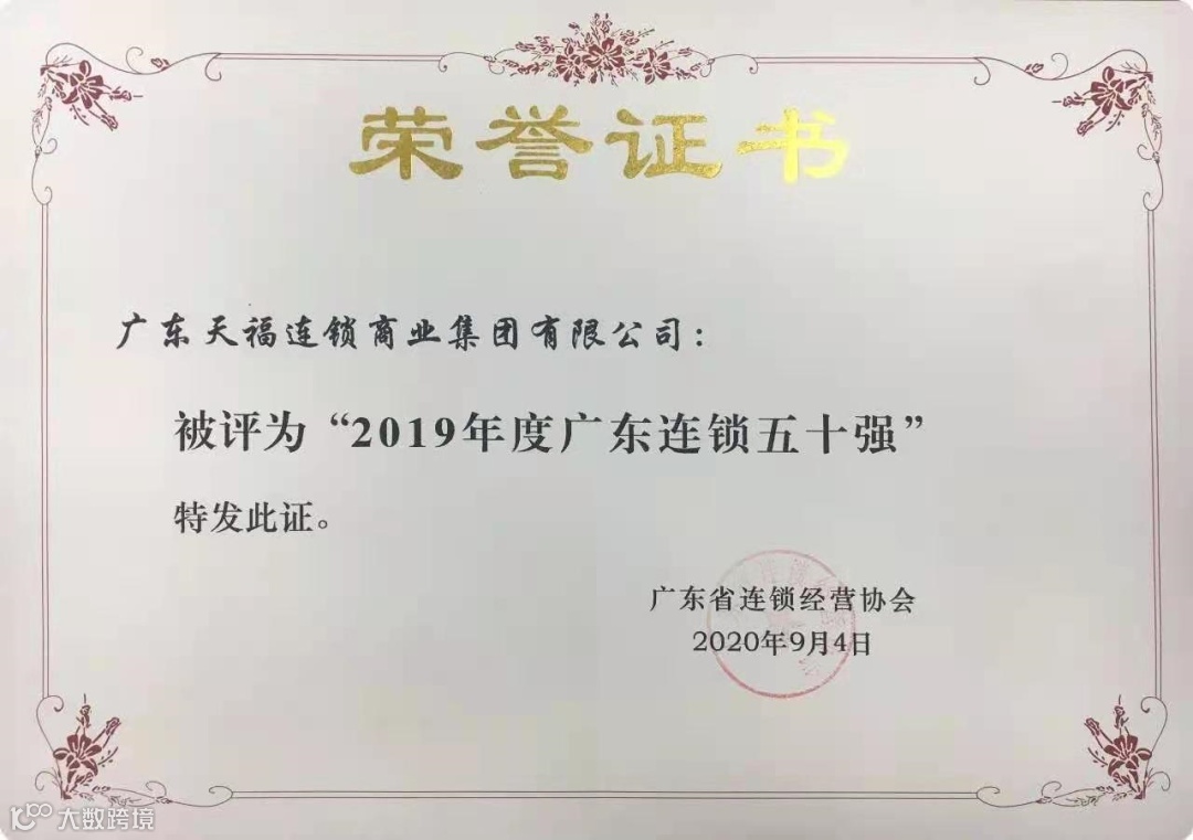 天福集团自成立以来,相继获得"广东十佳连锁经营企业"、“广东十大特许经营品牌"、"广东连锁五十强企业“、"广东诚信示范企业"、"中国便利店加盟品牌人气奖"、“中国便利店创新奖"、"广东省守合同重信用企业"、"质量•服务•诚信AAA企业”等荣誉奖项。