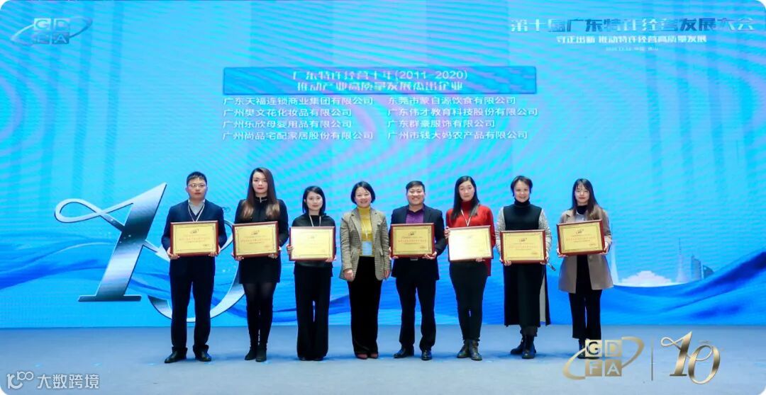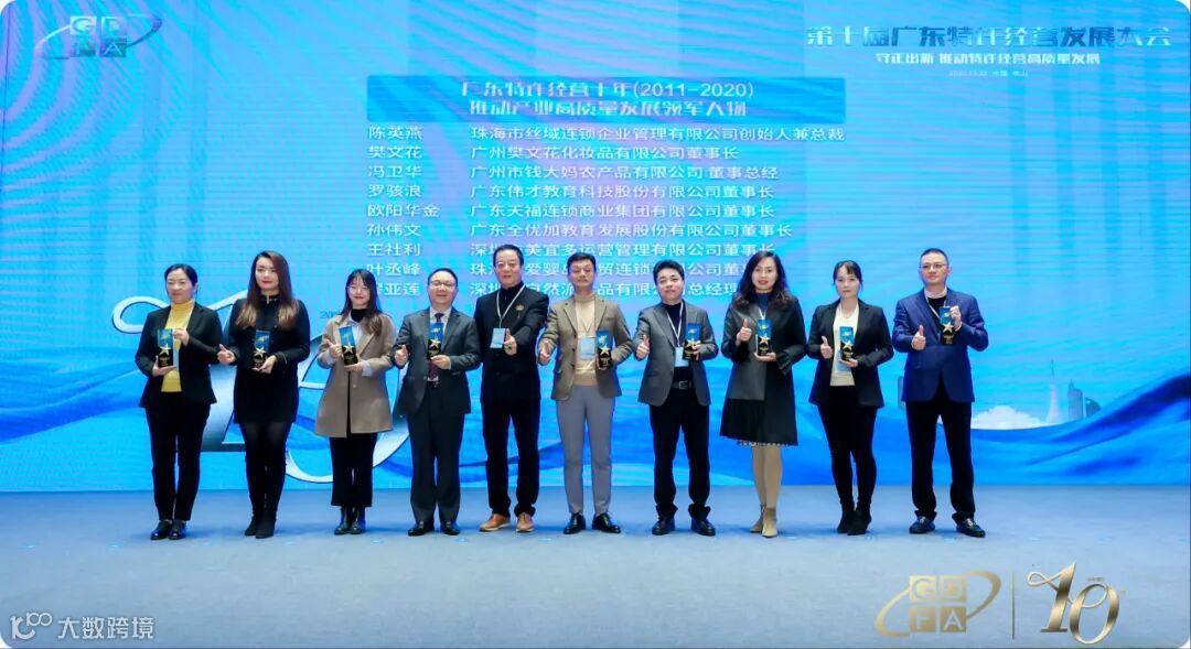 大会对2011-2020年期间推动特许经营产业高品质发展作出杰出贡献的个人与企业进行表彰,天福集团董事长兼总裁欧阳华金先生被授予“广东特许经营十年推动产业高质量发展领军人物”, 天福荣获“广东特许经营十年推动产业高质量发展杰出企业”。