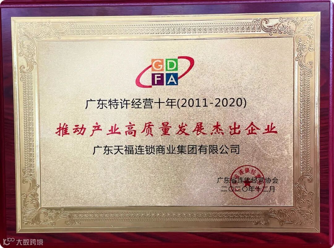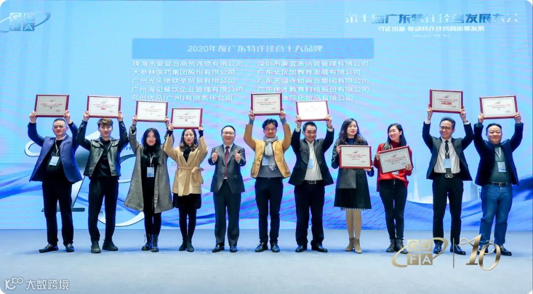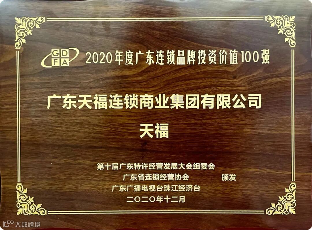大会上,2020年度广东十大品牌榜单揭晓,天福集团作为便利店行业中唯一入围的,被授予“2020年度广东特许经营十大品牌”的称号。获此殊荣代表着协会和社会各界对天福综合实力的认可和信赖。