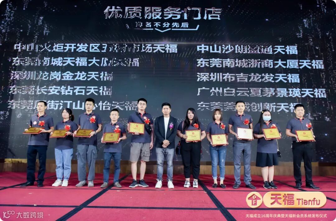 天福集团自成立以来,相继获得"广东十佳连锁经营企业"、“广东十大特许经营品牌"、"广东连锁五十强企业“、"广东诚信示范企业"、"中国便利店加盟品牌人气奖"、“中国便利店创新奖"、"广东省守合同重信用企业"、"质量•服务•诚信AAA企业”等荣誉奖项。