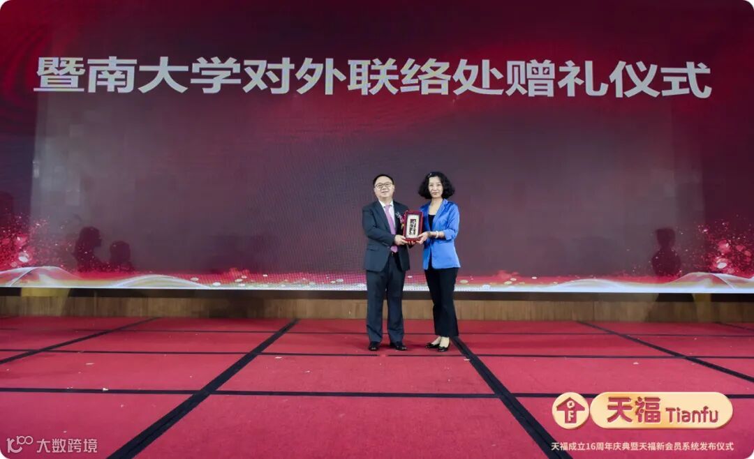 在晚会期间,暨南大学经济学院党委书记成品兴先生、暨南大学文学院党委书记魏霞女士、暨南大学对外联络处副处长刘毓洁女士分别给欧阳华金董事长赠送了贺礼。