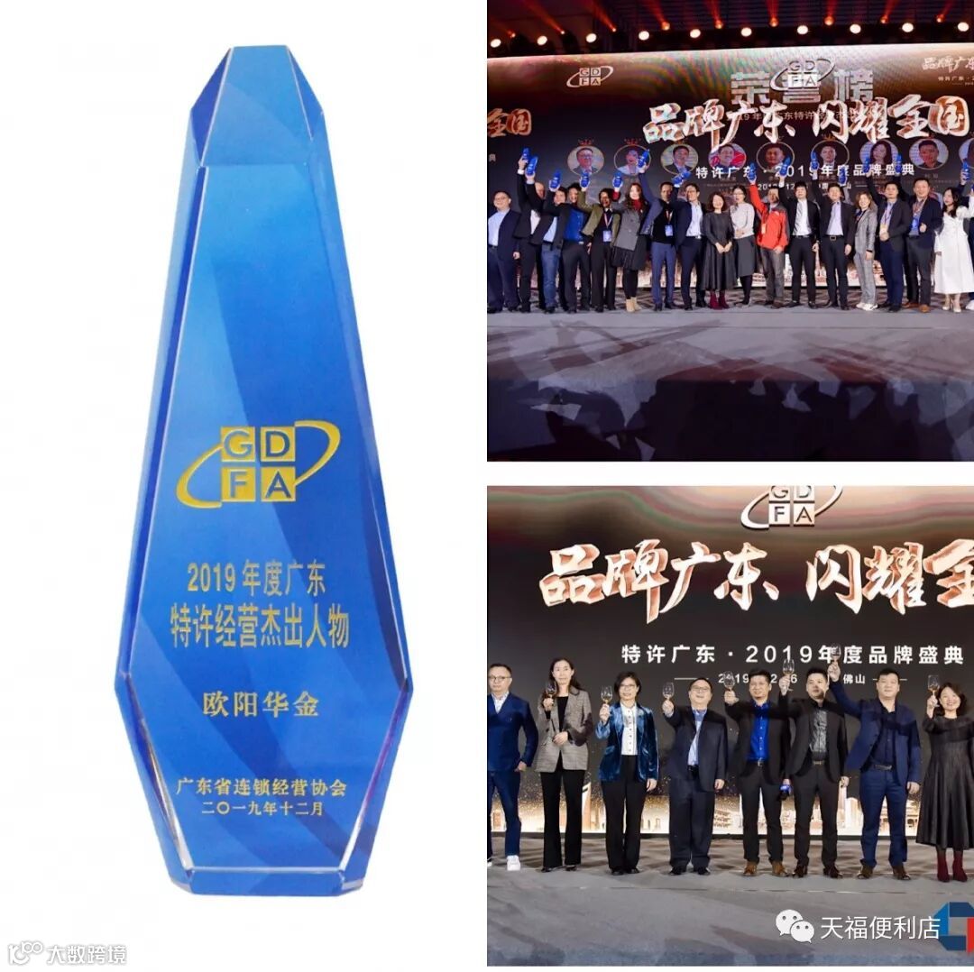 在本次会议上,发布了由专家顾问团评选出的2019广东连锁加盟人气品牌TOP100和广东特许经营卓越品牌、广东十大影响力品牌、广东最具投资价值品牌20强、广东优秀加盟总部等多个奖项。天福凭借在行业的强大品牌影响力和创新发展等方面的卓越表现荣膺“广东特许经营卓越品牌”荣誉奖项,集团董事长兼总裁欧阳华金先生斩获“2019年度广东特许经营杰出人物”称号!