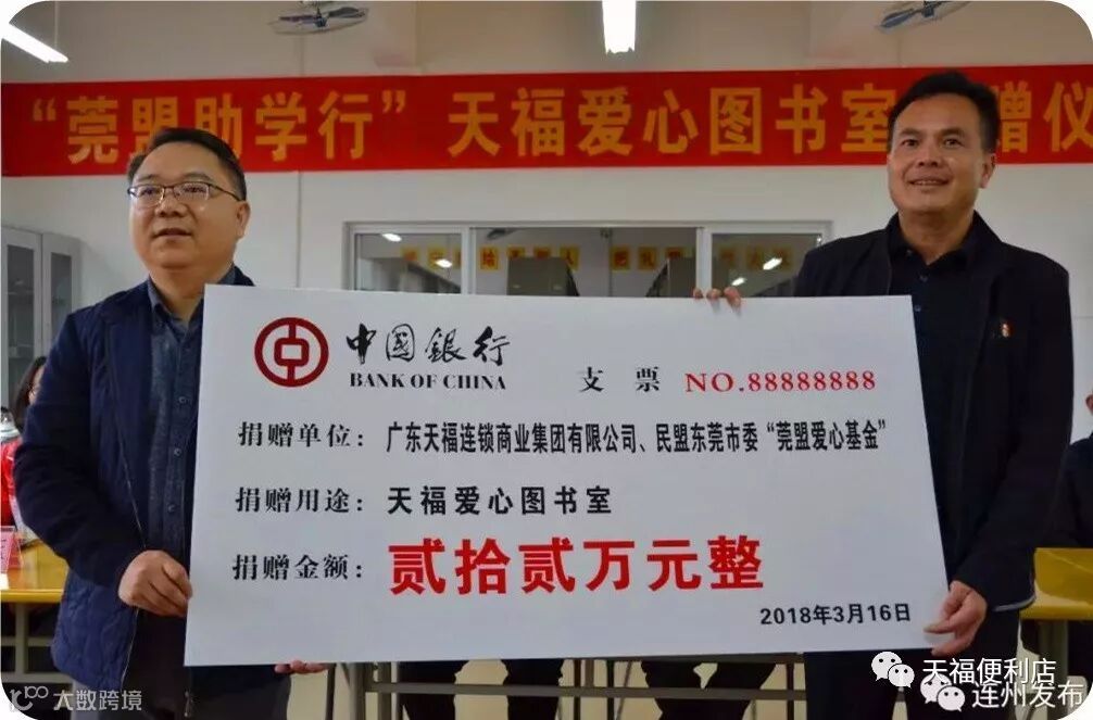 不仅如此,2016年,天福集团为莞盟爱心基金捐助善款20万元,并与莞盟爱心基金建设了三间爱心满满便利店,这更是天福大力投身于公益事业的最好见证。