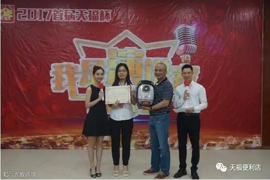 营销部小女生潘秀婷以独到的演讲、完美的配乐勇夺冠军