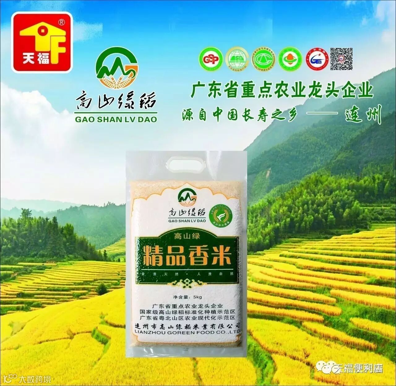 奖品:享受价值520元高山绿稻大米半年免费送大礼包+天福创业基金5000元;