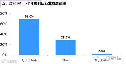 对于2016年下半年便利店行业的发展趋势分析,调研显示将好于上半年的占69%,持平占28.6%。