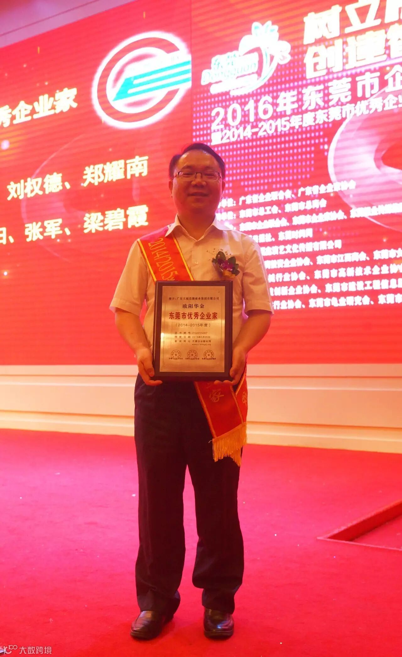 据了解, 本次“双优”评选活动历时五个月,吸引了全市各种所有制、各种行业的企业近300家和企业家近350人的报名参评,经过各有关单位的初评,推荐出参加复评的企业100家和企业家100名;再通过复评、终评,评选出2014-2015年度东莞市优秀企业、优秀企业家各50名,尤其值得庆贺的是,此次是欧阳华金董事长连续三届获得“东莞市优秀企业家”荣誉称号。