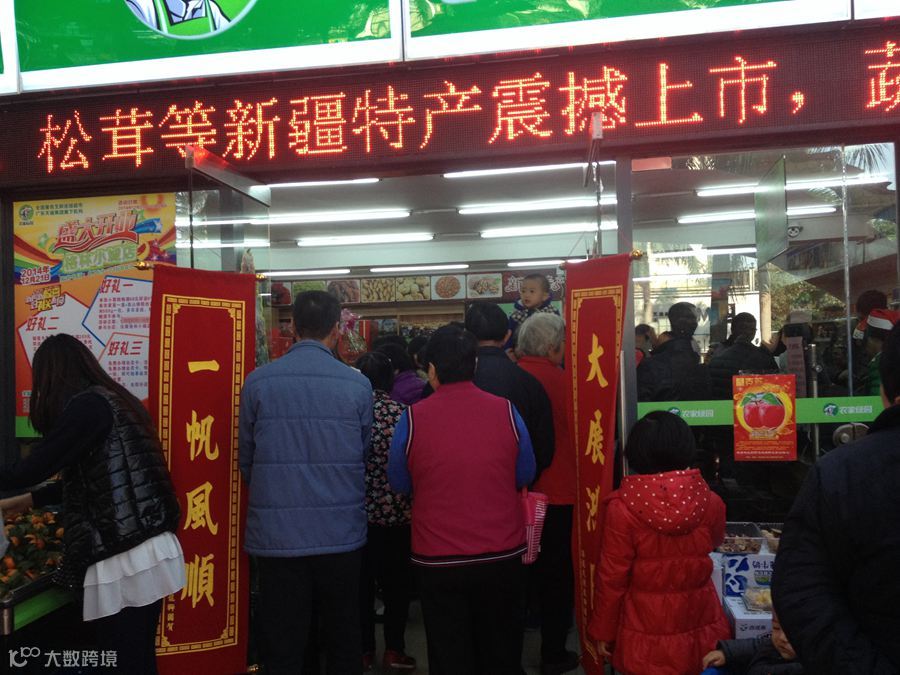 金地格林小城区的首个便民生鲜超市落户在这里,附近居民争相选购心仪的肉菜,连收银台也排起了长队。门店分蔬菜区、水果区、肉类区、其他生活用品区, 布置得井井有条。在蔬菜区,几十种菜类摆放有序,非常新鲜的果蔬 ,十分便利。尤其吸引人的是,门店现场在显眼位置设置了以新疆特产为主题的宣传海报,为本次开业做了良好的推介与展示。据悉,这次上架的新疆特产有包括核桃、和田大枣、阿勒泰松茸和阿勒泰原蜜等众多农产品上架,吸引了不少周边居民前来选购。