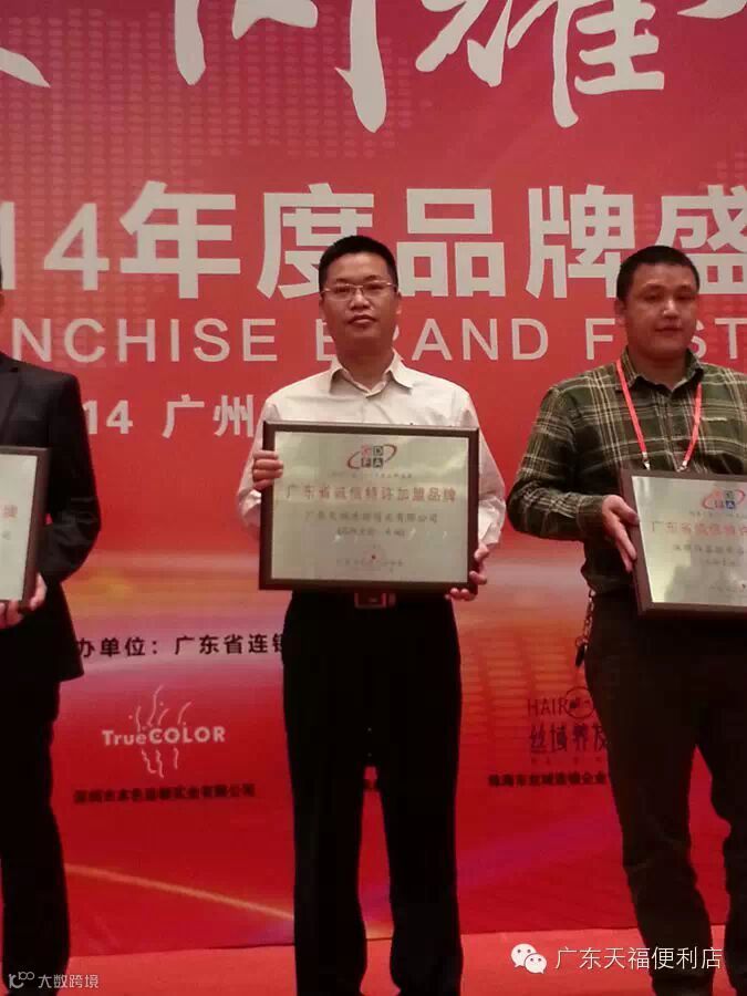 据悉,入围参与评奖的企业均为各连锁加盟行业的优秀企业。其中最引人关注的是,广东天福连锁商业有限公司十年如一日的坚持的“诚信、团结、创新、拼搏”的企业精神,成功夺得代表行业崇高荣誉的“2014年度诚信特许加盟品牌”称号。能够获得“诚信特许加盟品牌”殊荣,不仅是消费者对“天福”品牌的忠诚选择,更是社会各界对天福公司的高度认可。