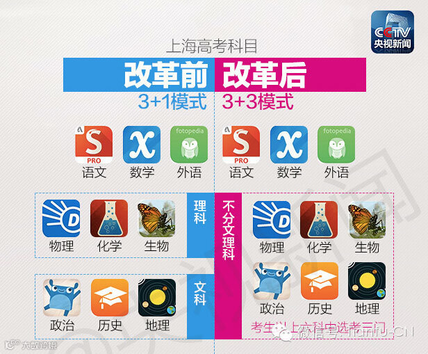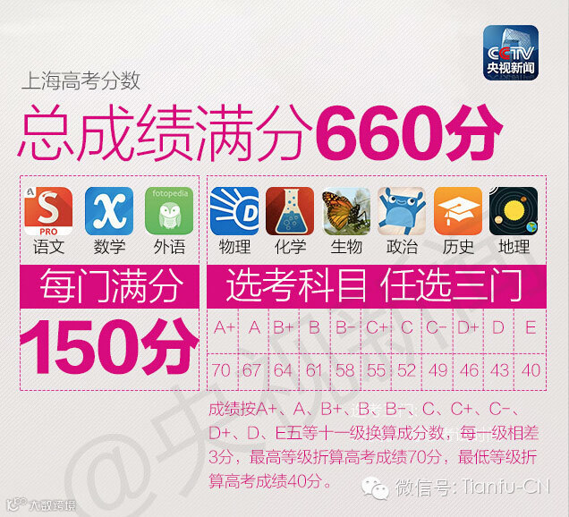 按照“实施意见”,今后高考只考语数外3门,再根据学校要求和自身特长,在政治、历史、地理、物理、化学、生物6科中,任选3科学业水平考试成绩计入高考成绩。