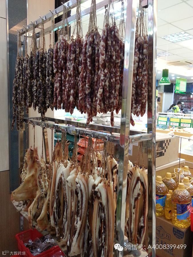 连州的菜心以清甜细嫩、更爽口汁而闻名;“秋风起,食腊味。”连州腊味更是拥有中国地理标志保护产品,干燥冷风和河水蒸气交柔,腊味在露天自然风干,腊味之风味,全在一个“风”字。门店内品种丰富的粤北特色农产品、腊味、干货更是令人眼前一亮。