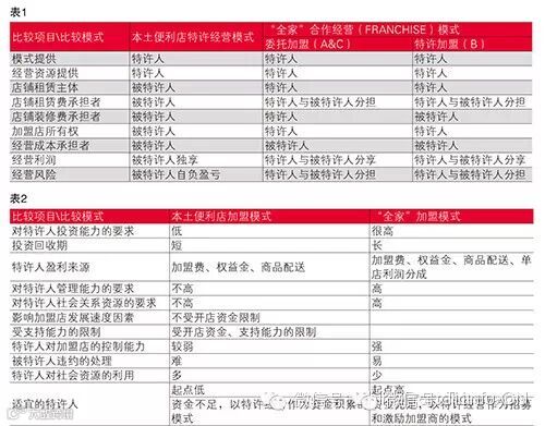 讨论特许加盟模式,不仅仅是理论问题,最重要的是要指导实践。下表对本土便利店品牌的特许加盟模式和“全家”特许加盟模式的利弊进行了一些分析:(见表2)