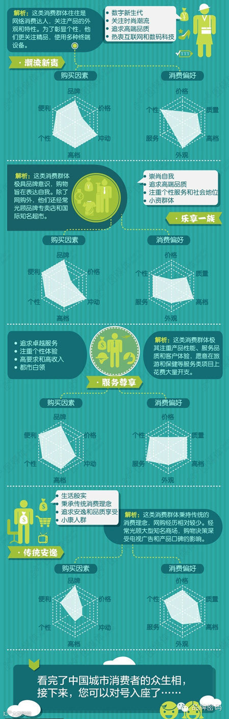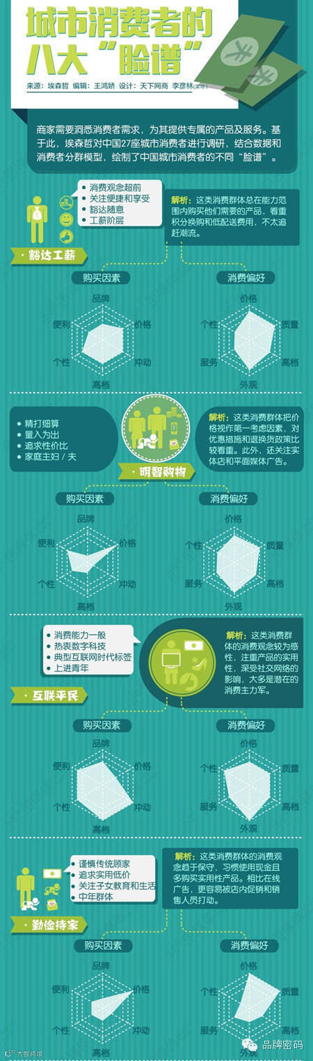 我国正迈向消费需求更加差异化和多元化的“唯我市场”,而城市消费者也呈现了各具特色的众生相。那么,根据埃森哲绘制的城市消费者“脸谱”,你属于哪一类?