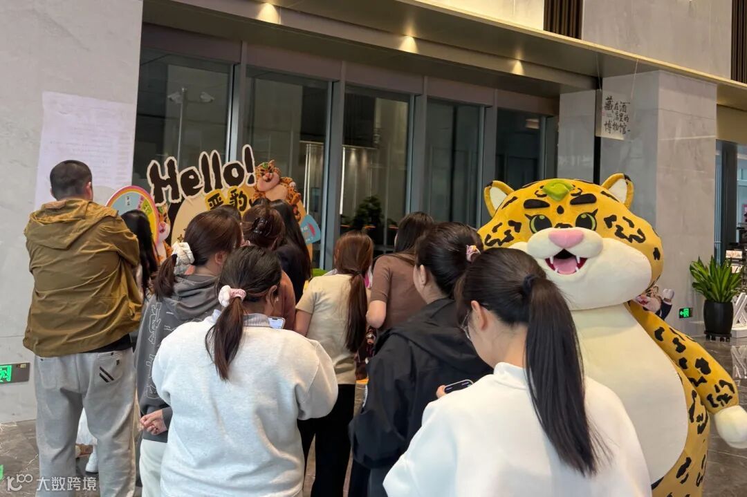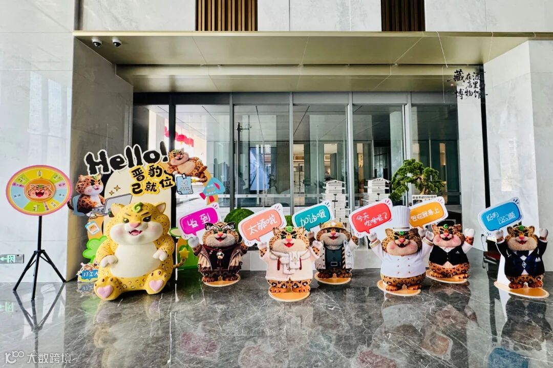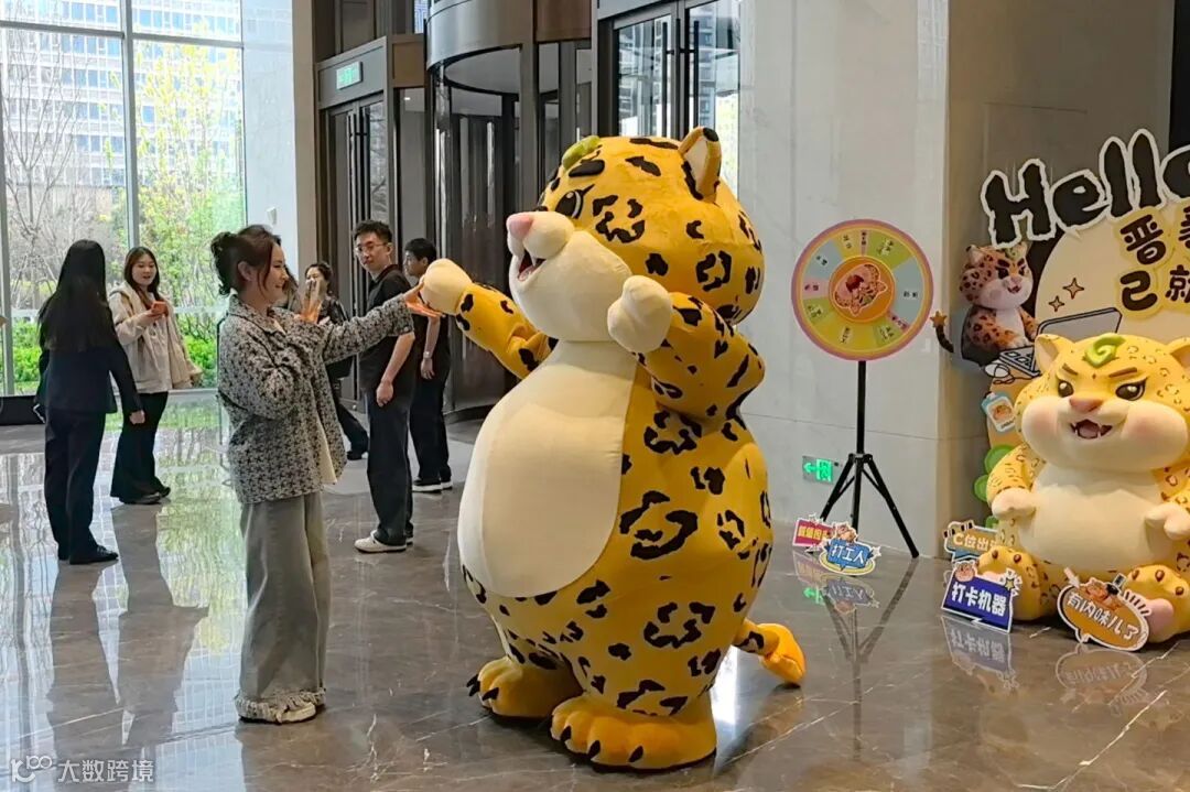 与此同时,万马商务中心一层打造的“晋豹主题展”正热烈进行,主要面向楼宇内各业户开放互动。业户们现场关注公众号、与晋豹人偶合影打卡并分享,即可参与幸运大转盘抽奖,每日限量周边好礼先到先得。