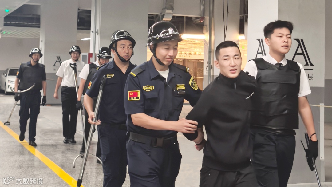 演练模拟了监控中心发现地库有可疑人员活动的情景。接到报告后,指挥组迅速启动应急预案,现场指挥立即调度力量响应。巡逻人员快速抵达现场核查,监控组全程紧密追踪目标动向。应急处置组队员闻令而动,精准分工,迅速形成两组包抄力量,一组果断制止模拟撬车门的“歹徒”,另一组则有效控制外围“望风”人员,成功完成模拟抓捕任务。
