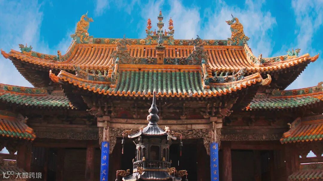 筒瓦、勾檐、滴水、鸱吻、脊兽等构件多样,融合龙凤、瑞兽、花卉元素,写实与写意兼具,立体感强。
