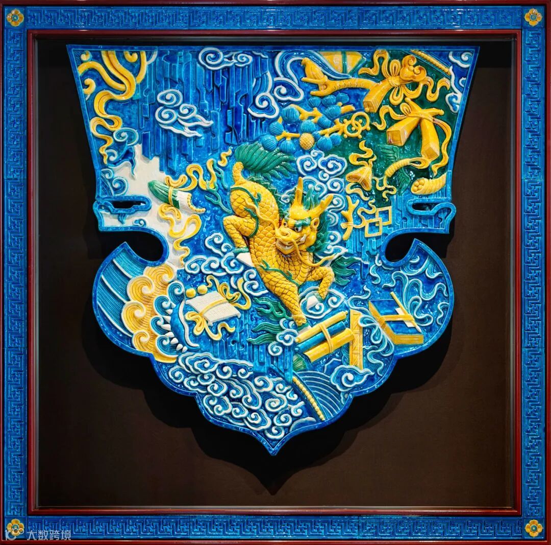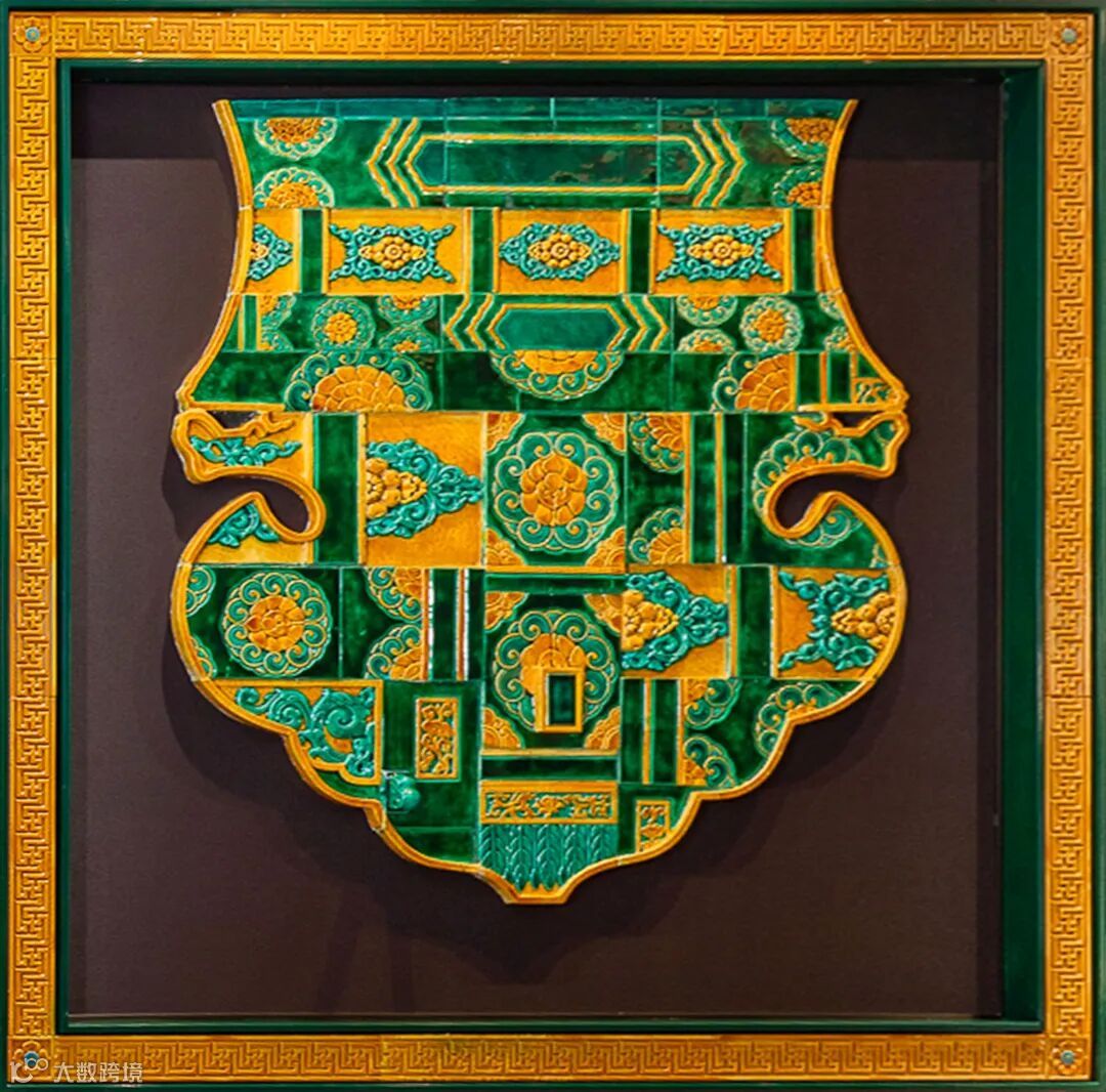 另一琉璃杰作取自传统建筑局部构件,是色彩艺术与建筑智慧的融合:明黄琉璃,金辉流淌,尽显皇家气派之威严;蓝绿色调,清雅深邃,仿佛将天宇之阔、大地之沉融入釉色,尽显礼敬天地之大度气魄。这些源自自然的精妙釉色,不只构筑了璀璨的视觉华章,更无声蕴含着对天地万物的深刻体悟。