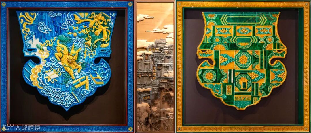左右琉璃作品《万事如意》;中间长治堆锦作品《汇通天下》