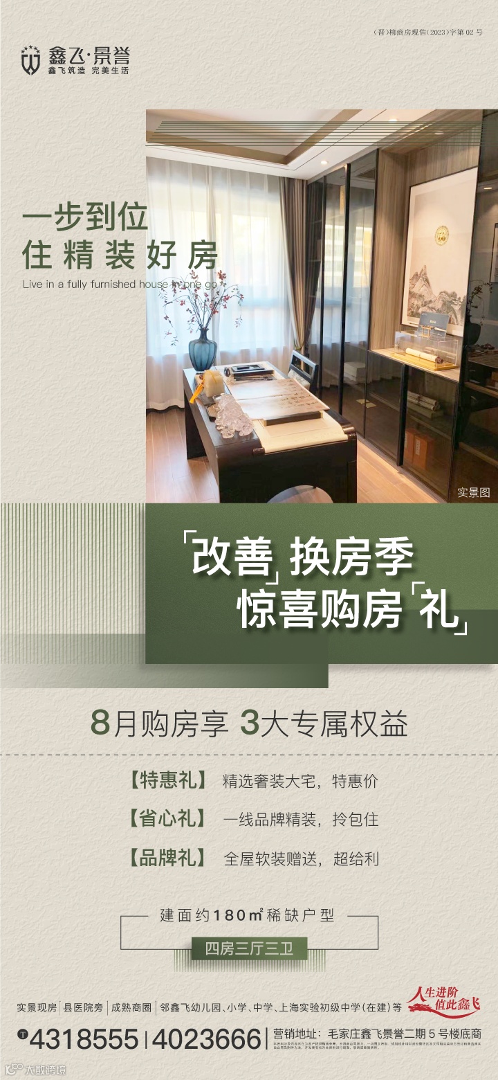 柳林封面人居——鑫飞景誉收官巨献!独此1席180㎡精装大宅现房,凝聚全盘匠心。这不仅是空间范本,更是您改善生活的完美答案: