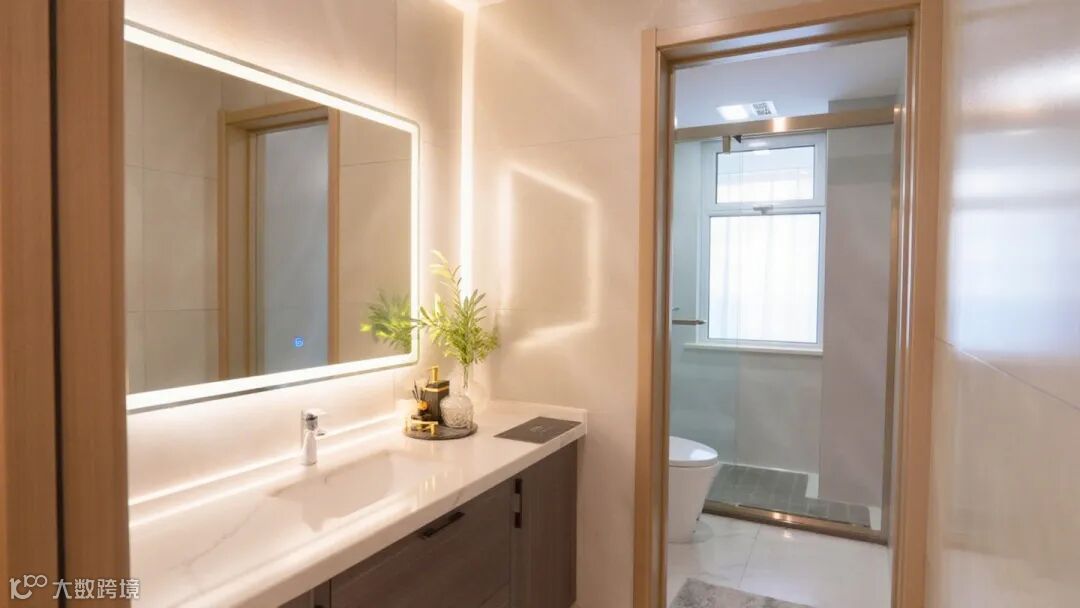 智慧卫浴:智能镜灯清晰梳妆,浴柜下空防潮易收纳,一体台下盆好清洁。