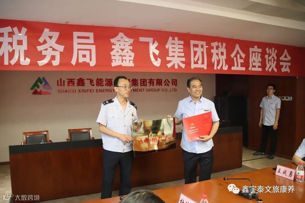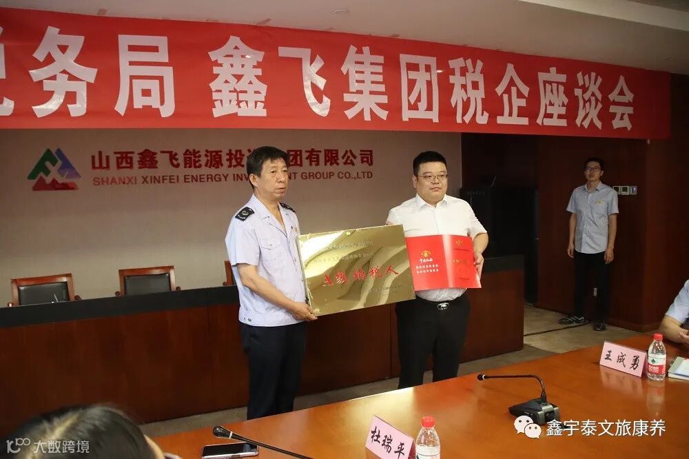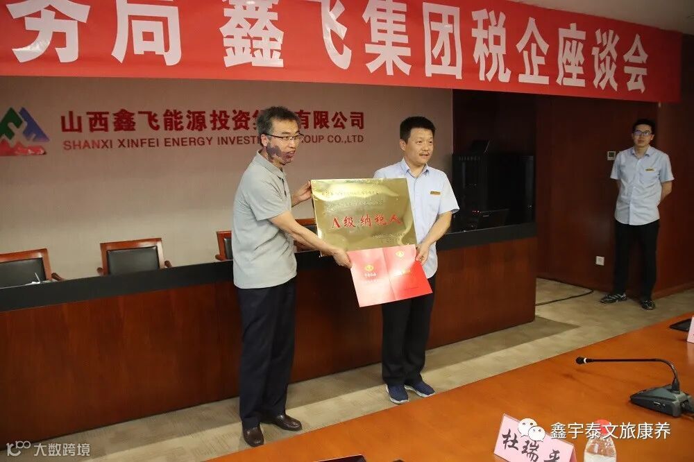 2022年6月1日,鑫飞能源投资集团与国家税务总局柳林县税务局在鑫飞大厦10层会议室举行税企座谈会。会议的主要内容为A级纳税人授匾仪式及纳税信用评价科普分享。