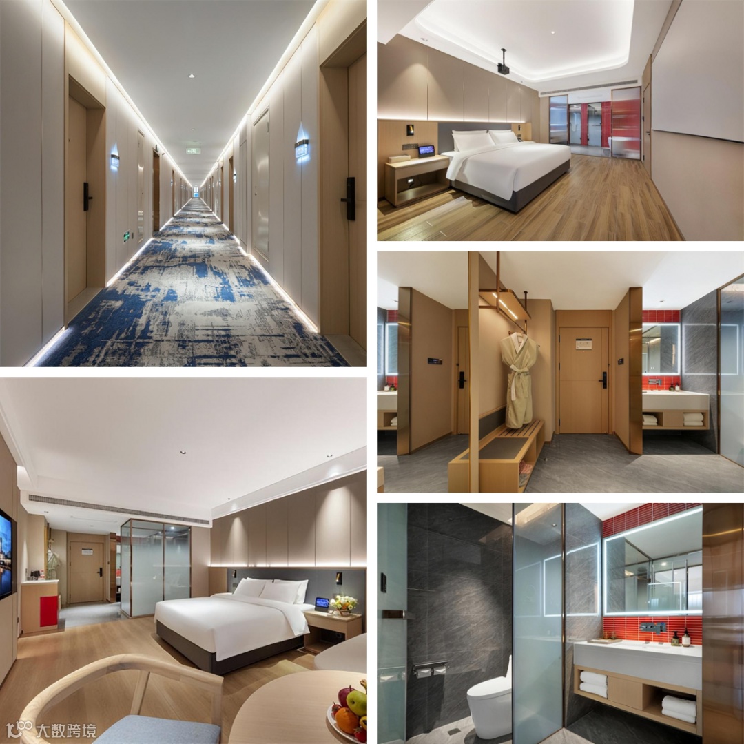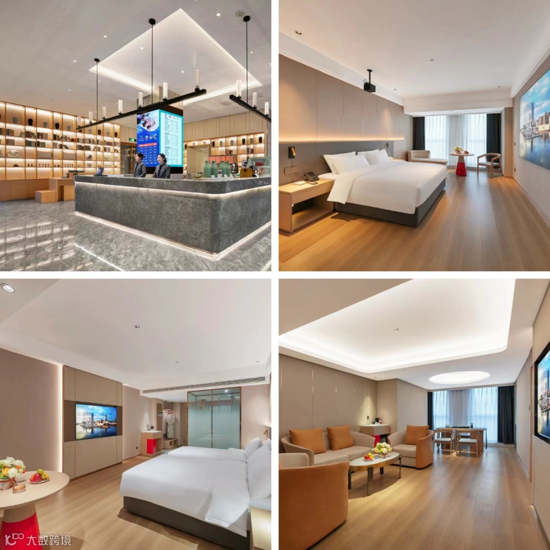 酒店装修风格属于现代轻奢风,将原木色和金属色完美地融合在一起,营造出一个低调奢华的入住环境。酒店大堂融合了阅读文化、咖啡文化、社交文化和空间文化,符合个人出行,商旅出差、家庭旅游等各个消费群体的审美观念,完美的打造出一个灵活的社交空间。