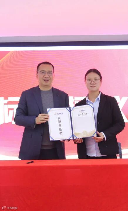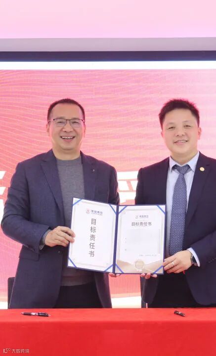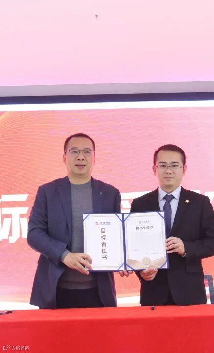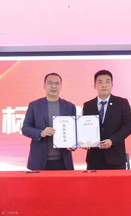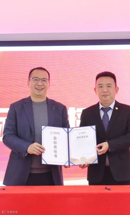最后,会议进行了一项重要的仪式——“目标必达成”签约仪式。在这个环节中,董事长与集团各级销售负责人签订了年度目标责任书。