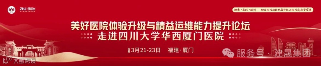 为助力医院高质量建设发展,建设符合未来发展需求的美好医院,筑医台与四川大学华西厦门医院等多家单位将于2025年3月在福建厦门联合组织召开“美好医院体验升级与精益运维能力提升论坛·走进四川大学华西厦门医院”活动。