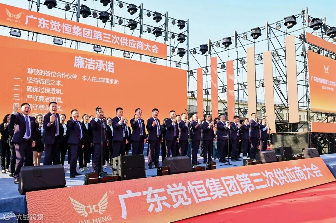 各事业部团队依次登台,面向全场供应商郑重承诺:"若违反廉洁条款,愿承担相应法律责任!"承诺声响彻会场,彰显觉恒零容忍态度。