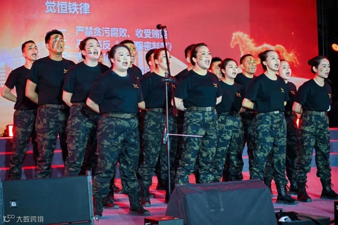 各事业部团队在《觉恒的向往》旋律中有序入场。会场高悬"融合创新 破局增长"巨幅战旗,44万元奖金牌与冠军杯陈列台前,未战先燃。全体起立奏唱国歌,启动大会在庄严氛围中拉开帷幕。