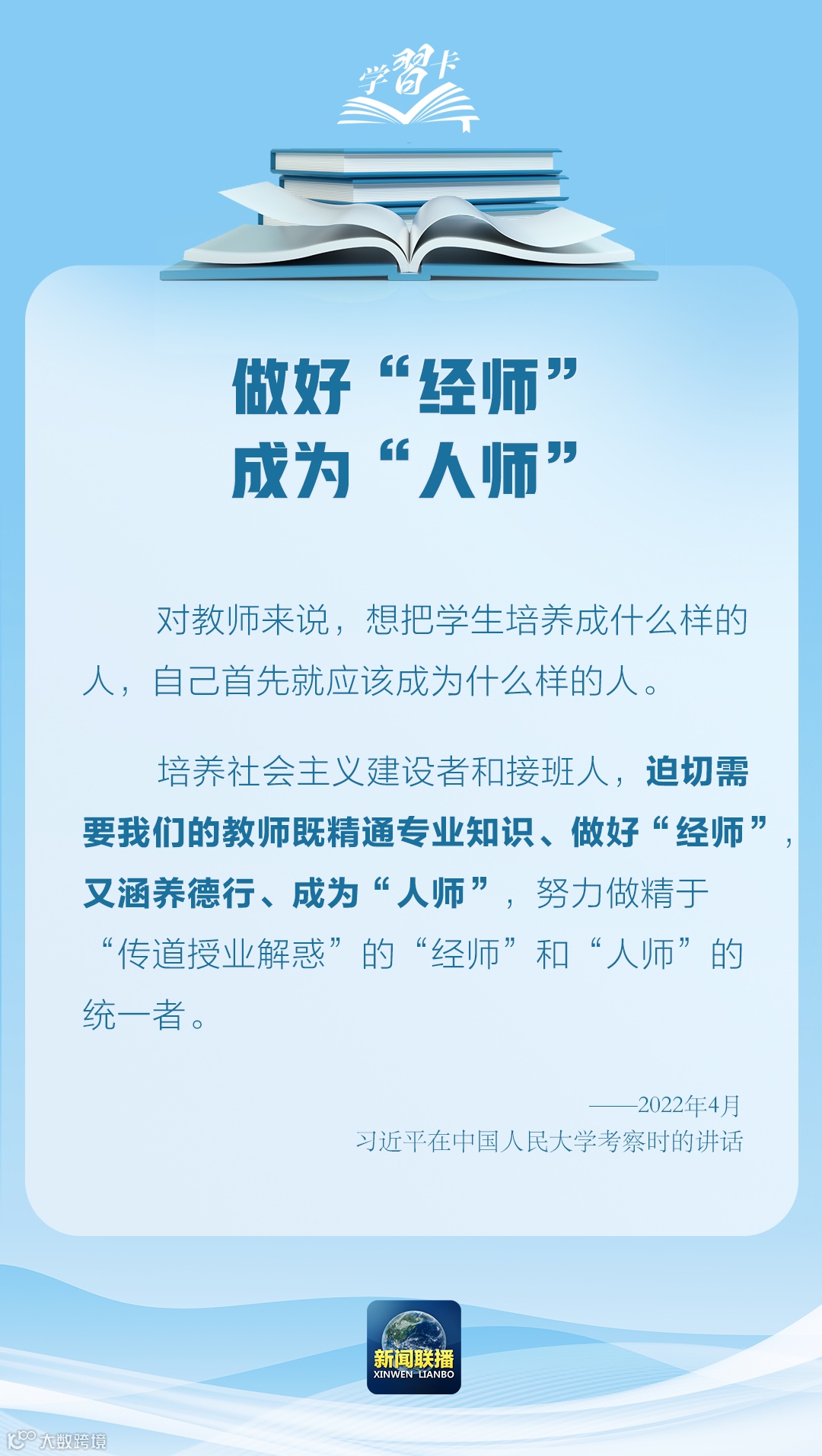 教育是民族振兴、社会进步的重要基石,是功在当代、利在千秋的德政工程。教师承载着传播知识、传播思想、传播真理,塑造灵魂、塑造生命、塑造新人的时代重任。