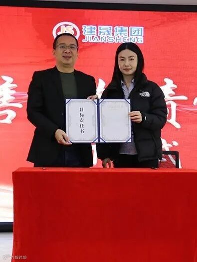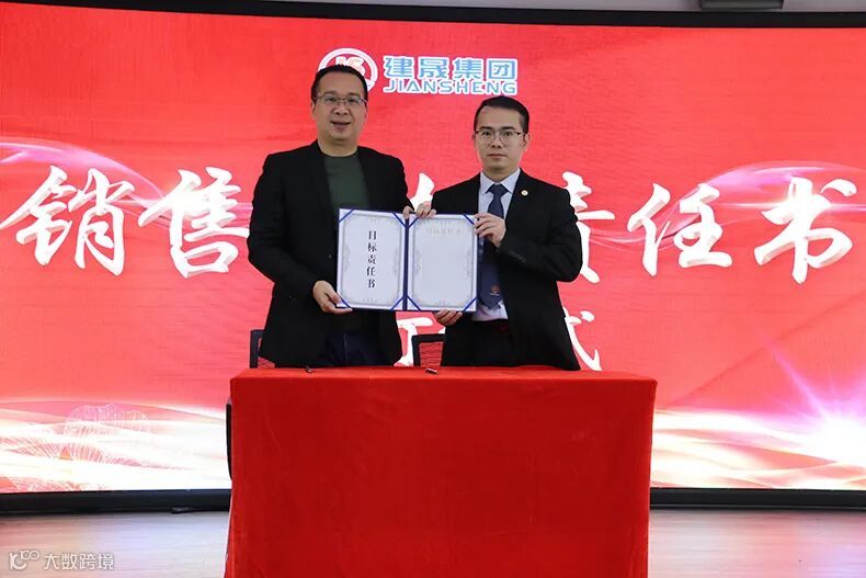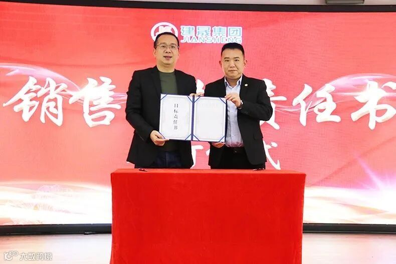 最后,会议进行了一项重要的仪式——“目标必达成”签约仪式。在这个环节中,董事长与集团各级销售负责人签订了年度目标责任书。