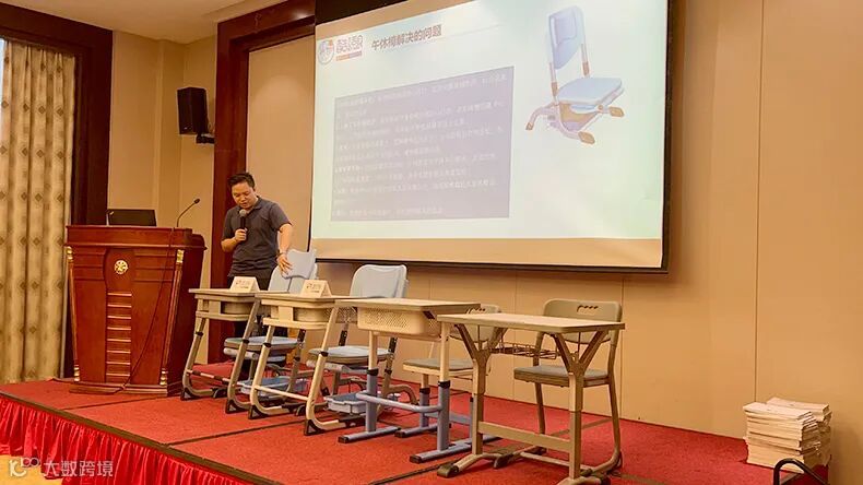 建晟教育营销副总梁正伟先生在现场给大家讲解酷憩产品。让大家对这款酷憩午休课桌椅的设计,研发,生产,质量等方面能够有进一步的了解。
