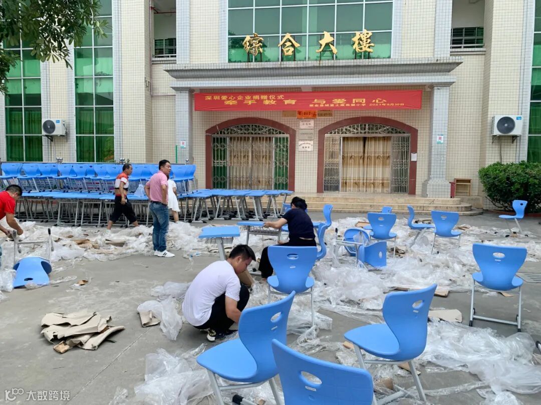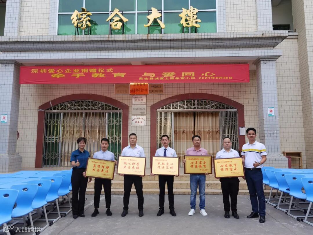 建晟教育深圳事业部总经理刘鹏先生代表建晟教育向紫金县城富士康希望小学捐赠课桌椅。