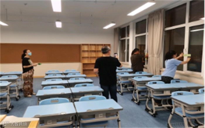 8月16日晚9点,校级家委会成员以及学校部分干部教师全程参与教室空气质量检测封门过程。