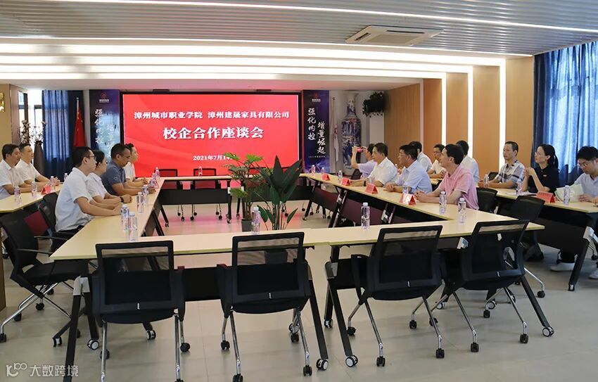 座谈期间,学院领导与漳州建晟家具有限公司签订了校企合作协议,举行了简单庄重的授牌仪式。签约仪式结束后,营销副总梁正伟向学院领导一行介绍了企业概况和发展战略。