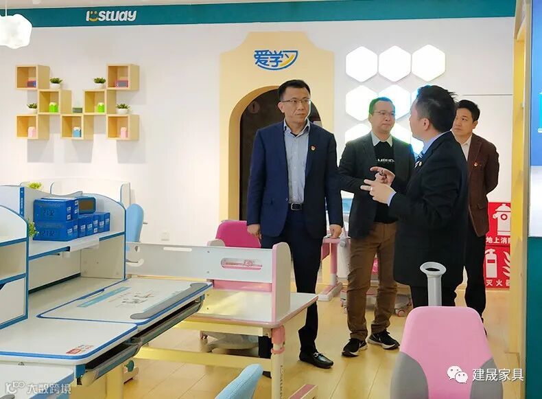来访领导一行参观了建晟教育的生产车间、学校家具展厅、爱学习儿童学习桌椅展厅,参观中,梁正伟先生详细介绍了企业的情况,区长林小强对建晟教育学校家具表达了高度的认可。